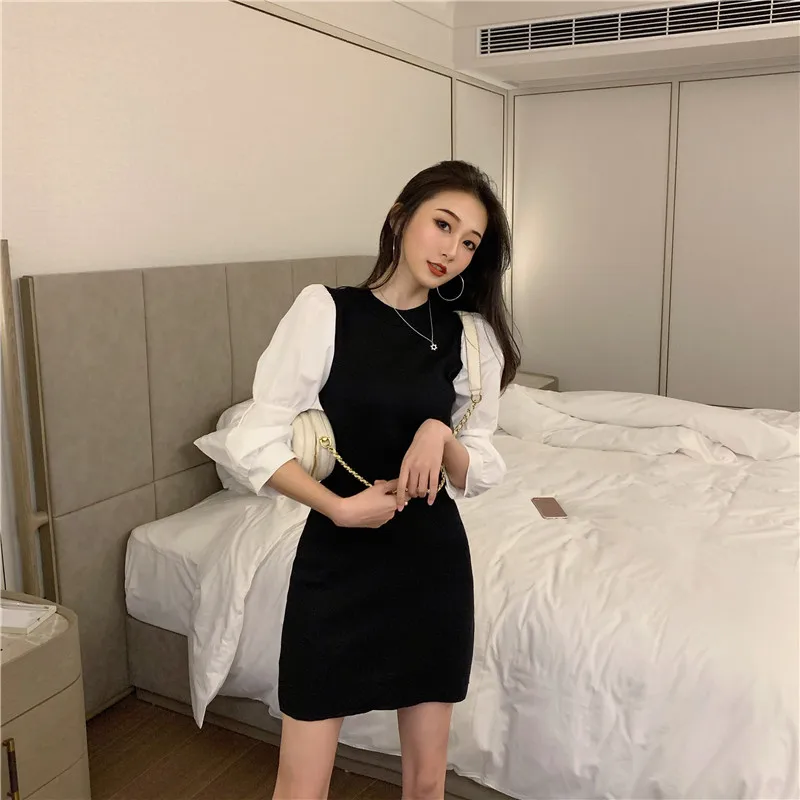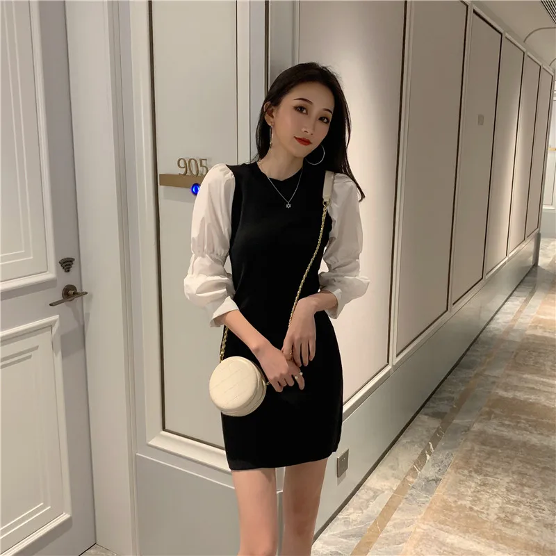 HIGH QUALITY Woherb 2020 Spring Summer Mini Party Dress Women Puff Sleeve Knit Dresses Korean Elegant Vintage Pe
