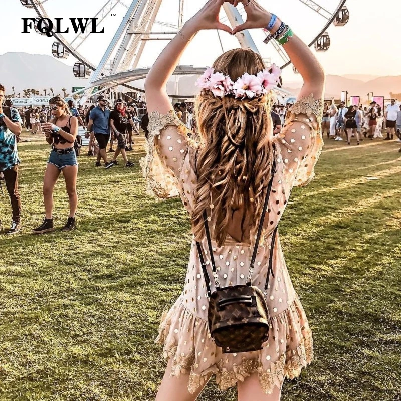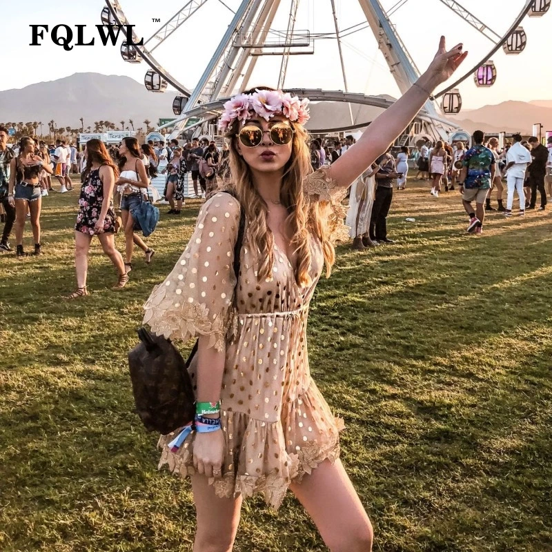 ORIGINAL FQLWL Patchwork Embroidery Polka Dots Sexy Mesh Dress Women Gold Half Sleeve Loose Party Mini Dress